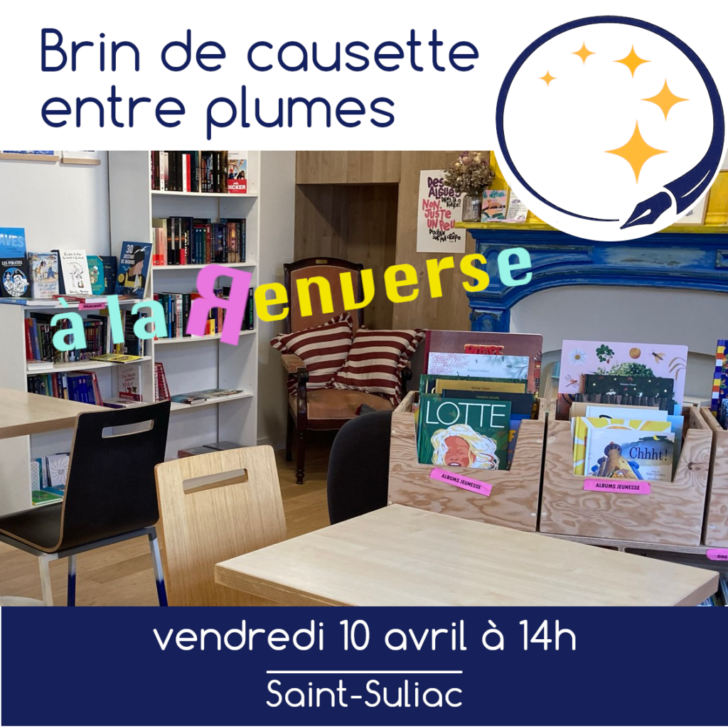 Plumes rodées ou attirées par l’écriture, retrouvons-nous pour échanger autour de de la création littéraire dans le cadre convivial et bienveillant de La Renverse. Une discussion libre, simple et d’entraide autour des intentions, des projets en cours, des obstacles à surmonter.Le 10 avril de 14h à 15h30 au café-librairie La Renverse à Saint-Suliac